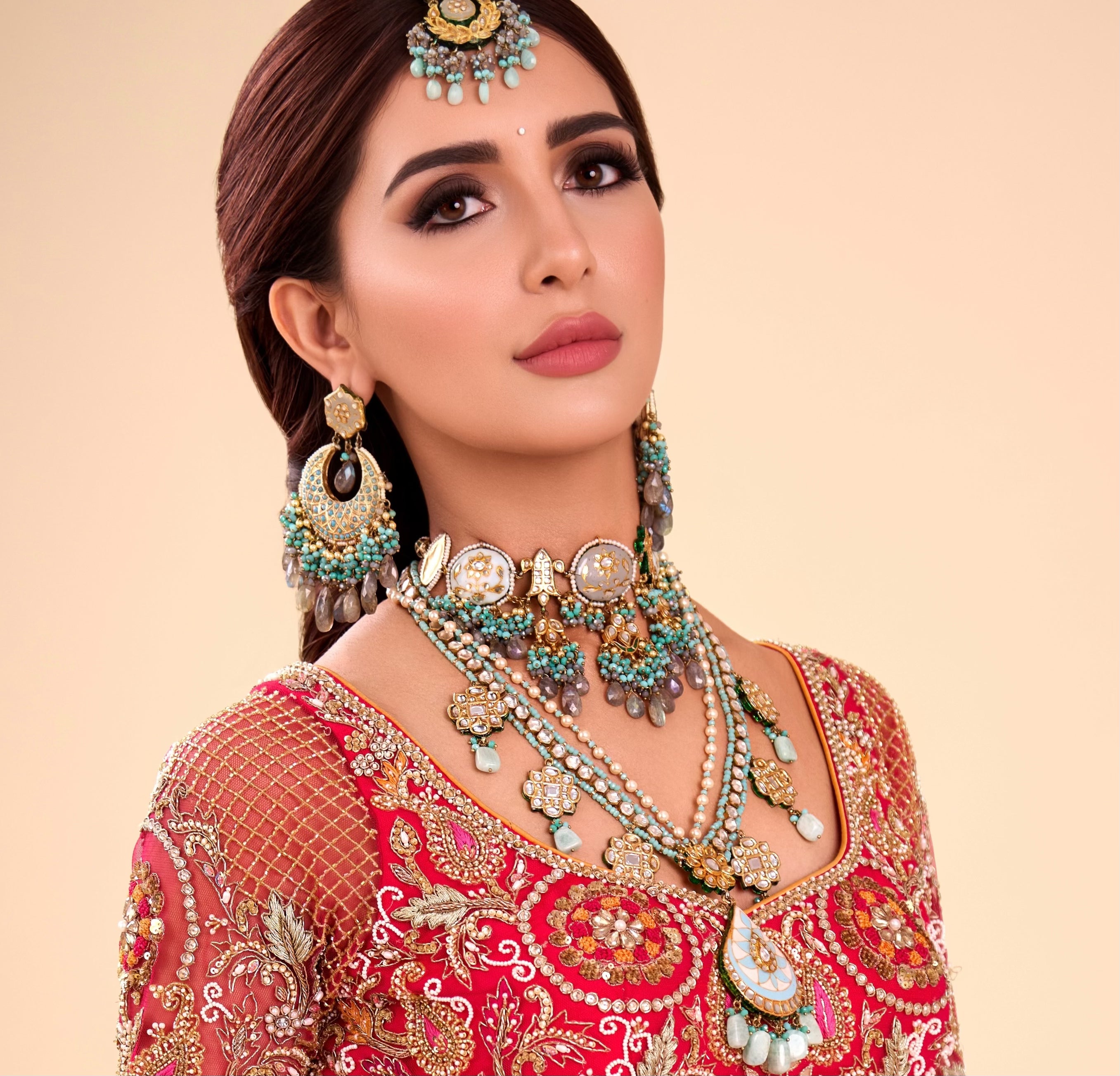 A vibrant and joyful bridal look bursting with rich colours to make every moment unforgettable.