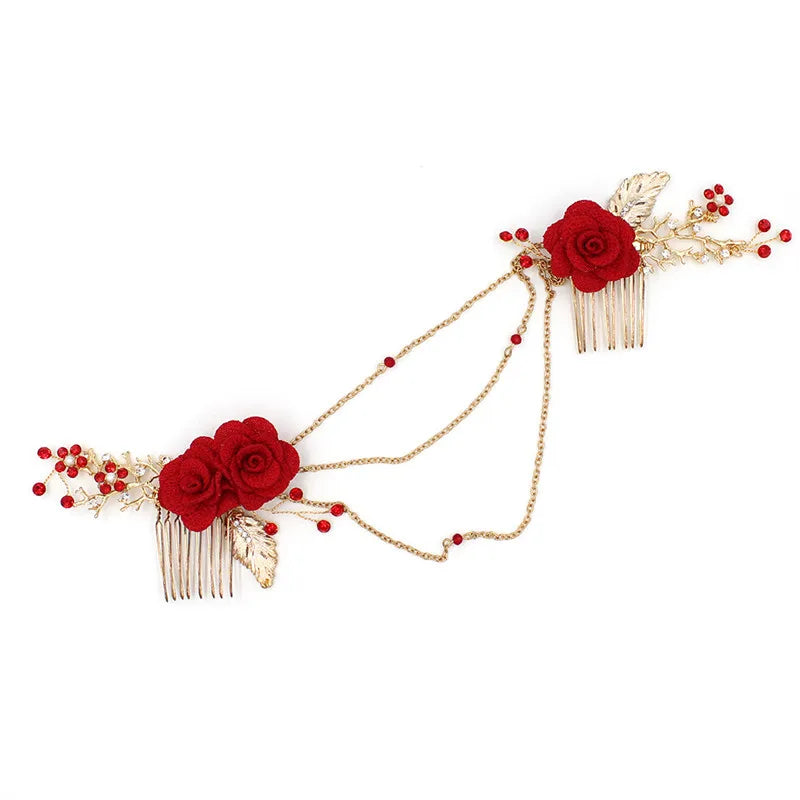 Scarlett Red Floral Boho Hair Comb is a bold and romantic accessory that seamlessly blends bridal elegance with festival-ready charm. Its vibrant red floral design makes it a perfect choice for reception brides, vintage-inspired weddings, bohemian celebrations, or vibrant, unconventional events. Whether you're walking down the aisle or dancing under festival lights, this comb is designed to make a statement.