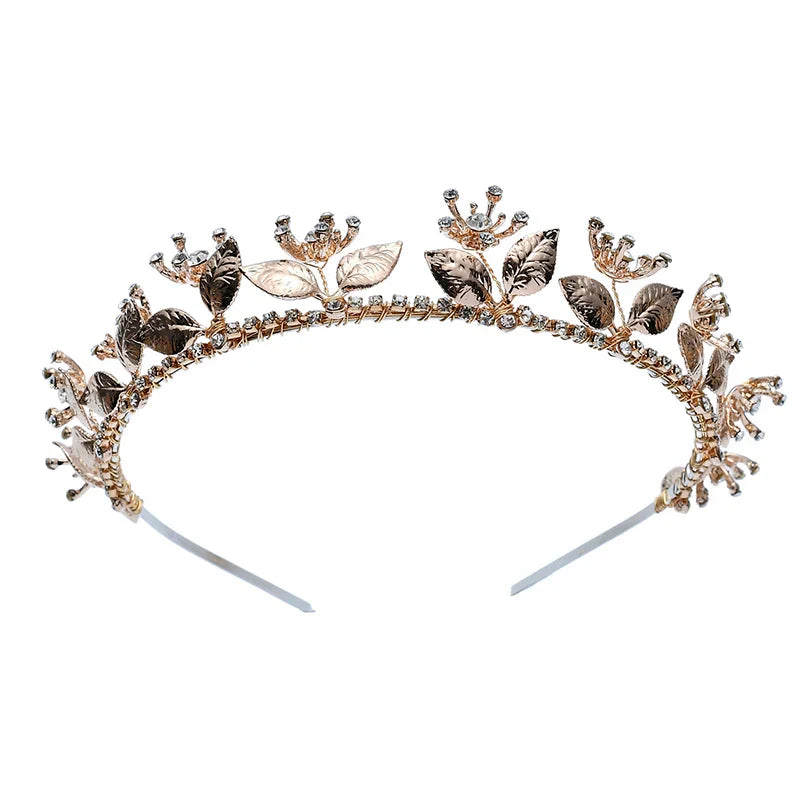 The Aurora Gold Floral Bridal Headband is a captivating accessory that brings a touch of golden elegance to your wedding day look. Inspired by nature's beauty, its intricate floral design is crafted with delicate golden leaves and blossoms, creating a radiant yet graceful statement.