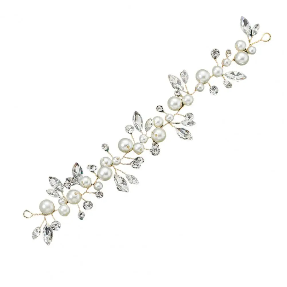 Isla Pearl & Crystal Bridal Hair Vine is a breathtakingly elegant piece that brings a touch of timeless beauty to your wedding day look. Crafted with delicate pearls and sparkling crystals, this bridal hair vine weaves an intricate design that will shine as you walk down the aisle. The soft, shimmering pearls are complemented by the subtle sparkle of the crystals, creating a sophisticated, radiant effect that enhances your bridal hairstyle.