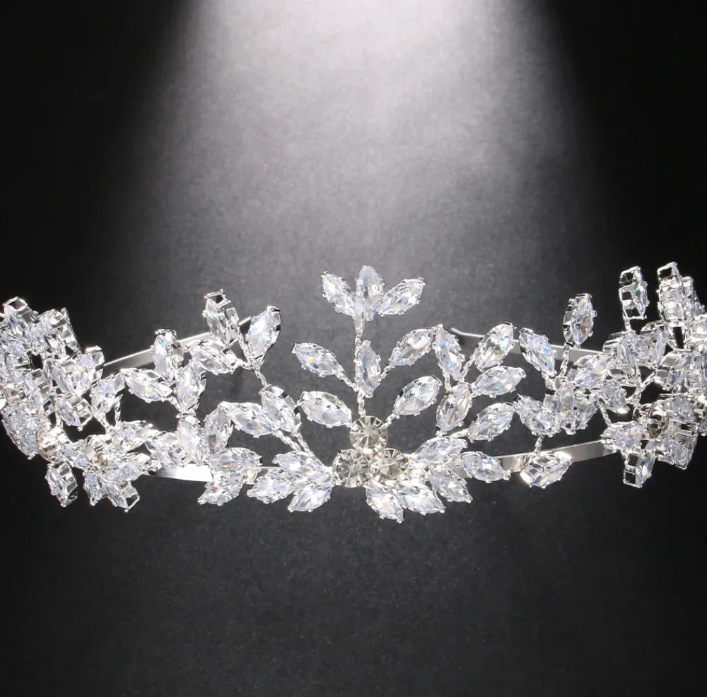 Beautifully adorned with sparkling crystals, the Myra Wedding Crown Crystal Tiara is the epitome of bridal elegance. Designed to feel like a queen’s crown, this tiara adds a sophisticated and radiant touch to your wedding day look. Whether you’re walking down the aisle in a flowing ballgown or embracing a chic silhouette with a tailored jumpsuit, the Myra Tiara completes your ensemble with a sense of regal charm.