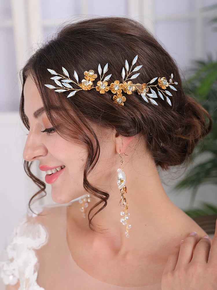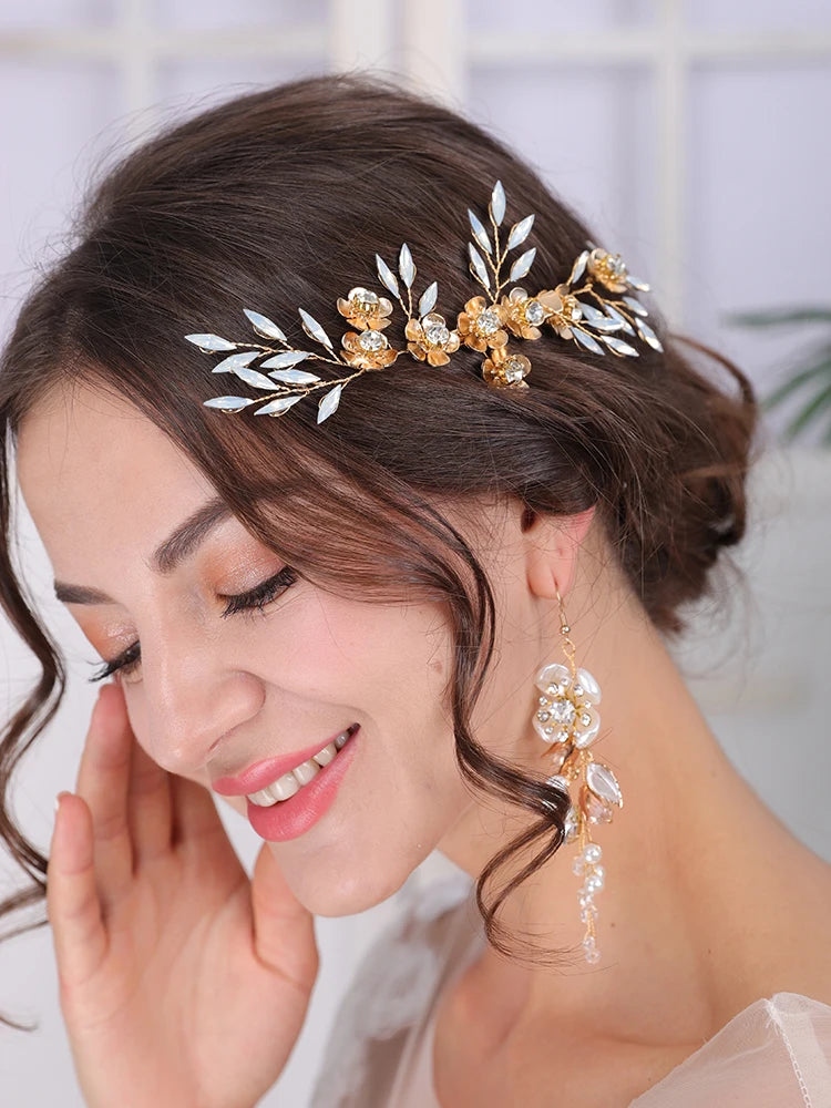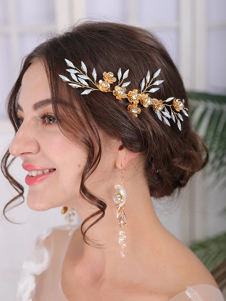 For the modern bride seeking understated elegance, the Sasha Gold Minimalist Hair Vine is the perfect choice. This sleek and chic accessory features a clean design and shimmering gold finish, adding a touch of contemporary glamour to your wedding day. Effortlessly stylish, the Sasha vine complements a variety of hairstyles and wedding dress styles.